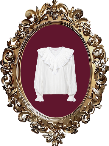 Роскошные рукава «фонарики» на плечах дарят ощущение праздника и лёгкой театральности, напоминая о нарядах при дворе. При этом прямой крой обеспечивает современное и комфортное ощущение, позволяя блузке мягко скользить по фигуре, не сковывая движений.